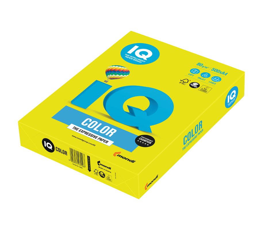 Бумага цветная для офисной техники IQ Color желтый неон NEOGB (А4, 80 г/кв.м, , 500 листов)