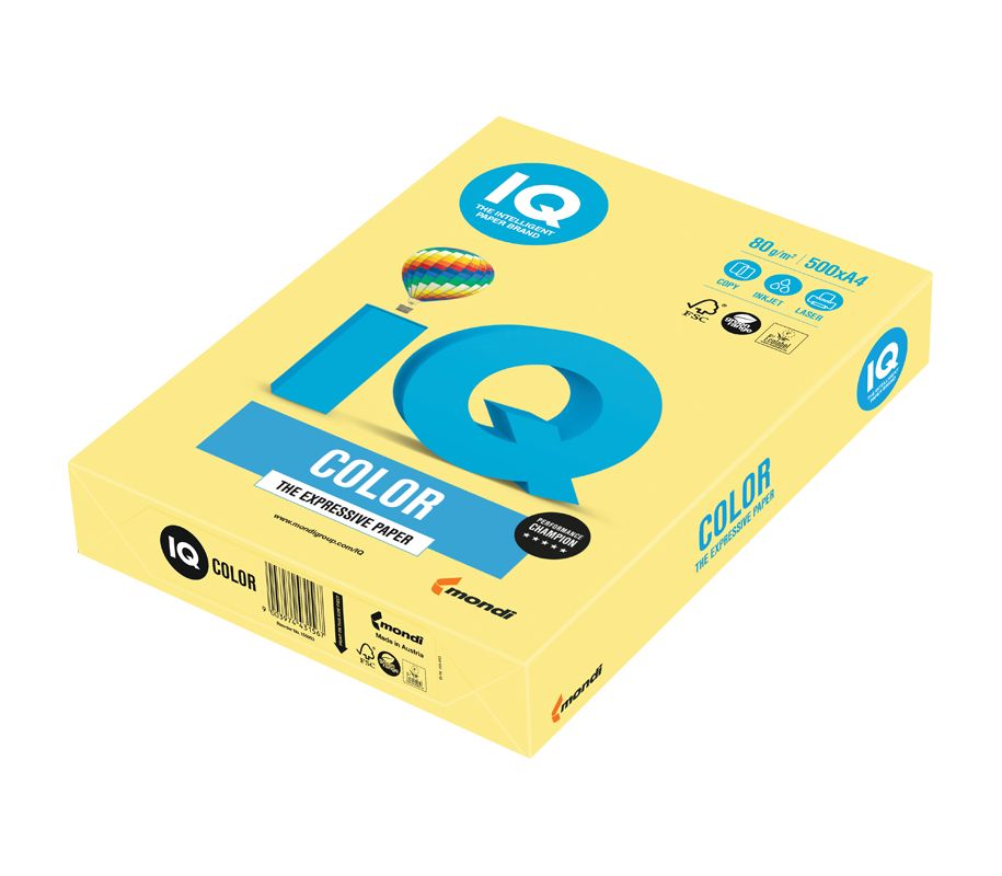 Бумага цветная IQ Color лимонно-желтого цвета применяется для печати на копировально-множительной технике, лазерных и струйных принтерах. Имеет микропористое покрытие, точно передает все оттенки, четкость изображения, мгновенно впитывает чернила и обеспечивает высокое разрешение (до 5760 dpi). Одна пачка содержит 500 листов формата А4, плотность которых составляет 80 г/кв.м. Прозрачная упаковка имеет многоразовый клапан.