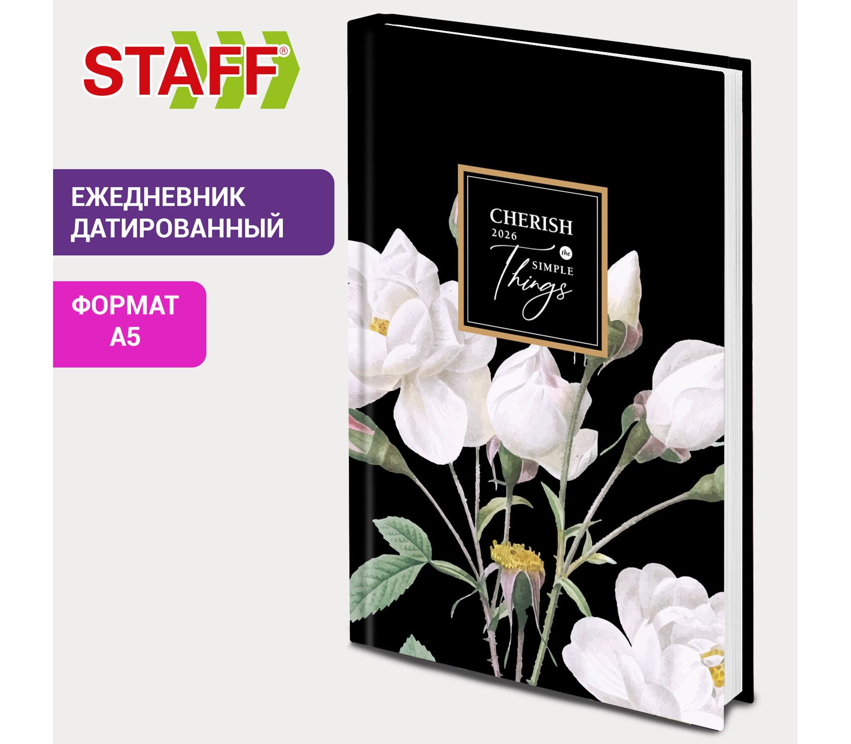 Ежедневник датированный на 2026 год STAFF "Розы" твердый переплет А5 160 листов (145x215 мм)
