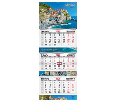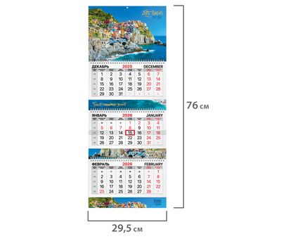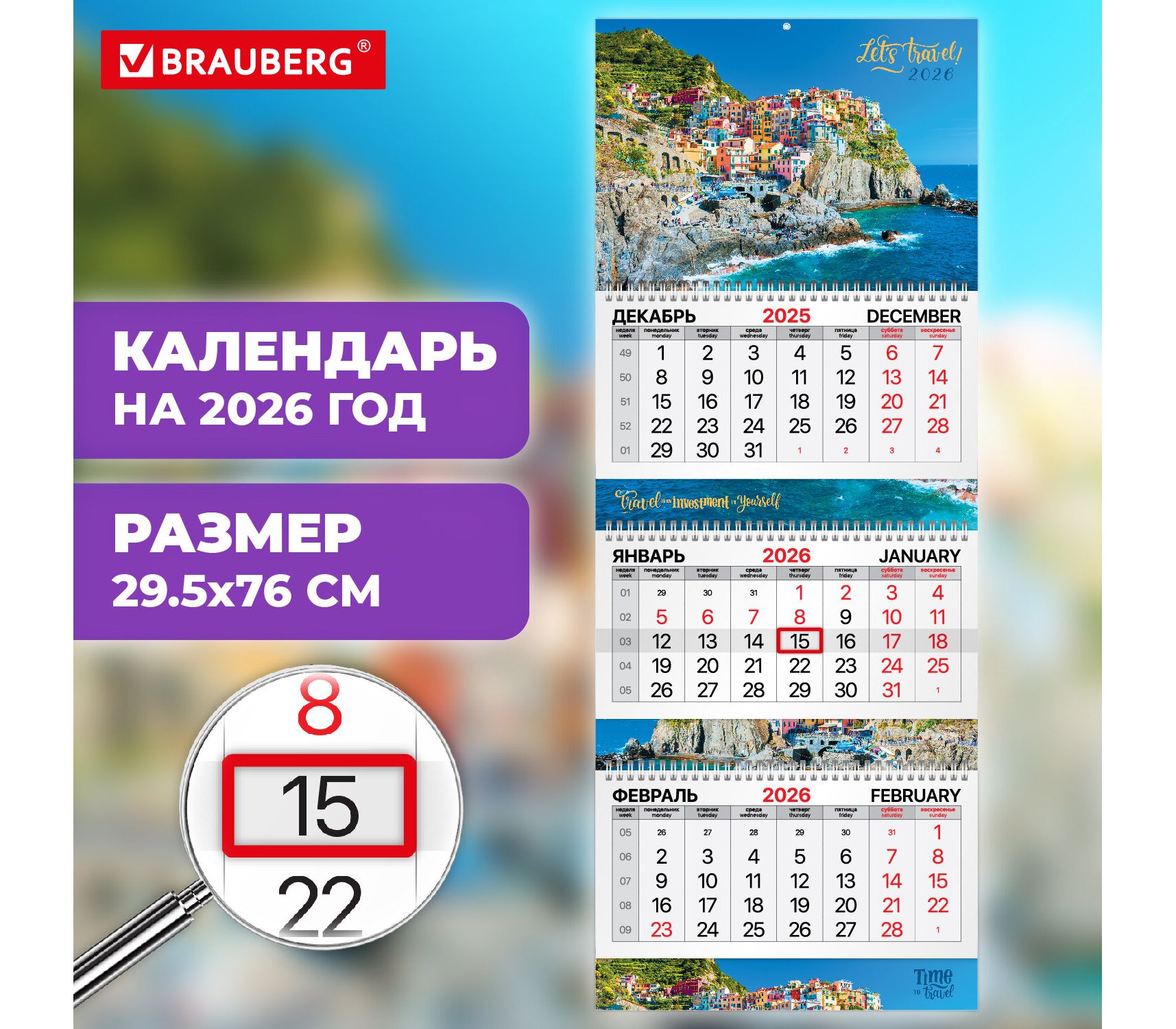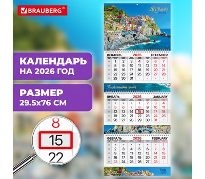 Календарь настенный 3-х блочный на 2026 год BRAUBERG EXTRA "БУХТА" (29,5х76 см) Премиум
