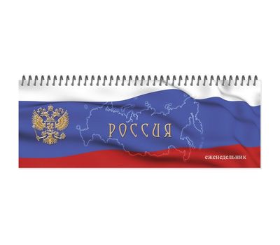 Настольный горизонтальный недатированный еженедельник-планинг "Государственная символика". Модель на металлическом гребне, картонная обложка с изображением Герба и Флага Российской Федерации. Блок включает 56 недатированных листов, выполнен из высококачественного офсета. Плотность бумаги 80г/кв.м. Планинг содержит календарь на два года и таблицу с кодами междугородной телефонной связи. В ассортименте - два вида дизайна обложки.