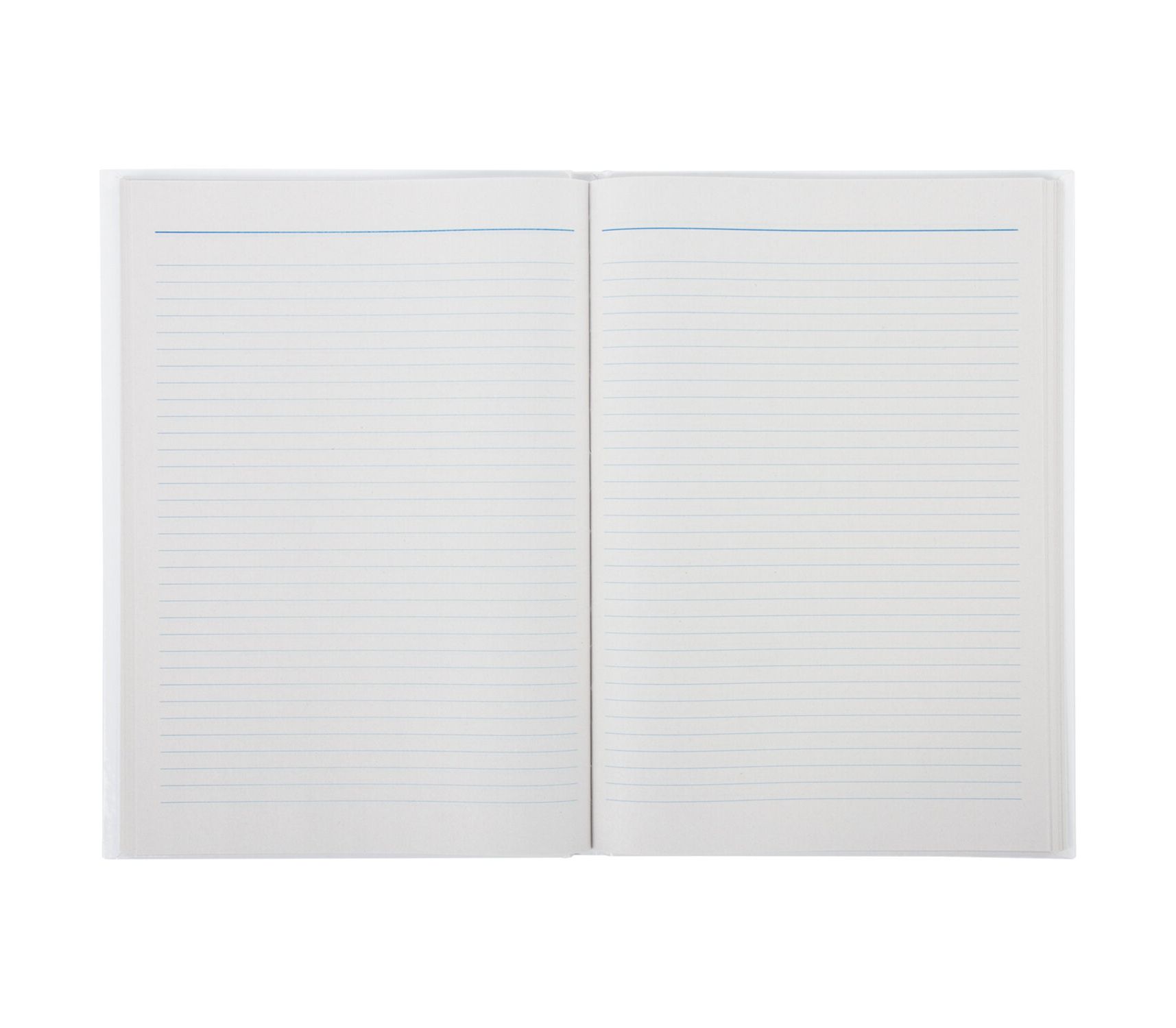 Книжная обложка с покрытием из глянцевой пленки приятна на ощупь и имеет эстетичный внешний вид. В сочетании с книжным переплетом ей свойственна хорошая износоустойчивость. Такое изделие сохраняет целостность в течение долгого времени. Внутренний блок 96 листов выполнен из типографской бумаги 55 г/м2 и разлинован в линию. Формат - А4 (200х290 мм).