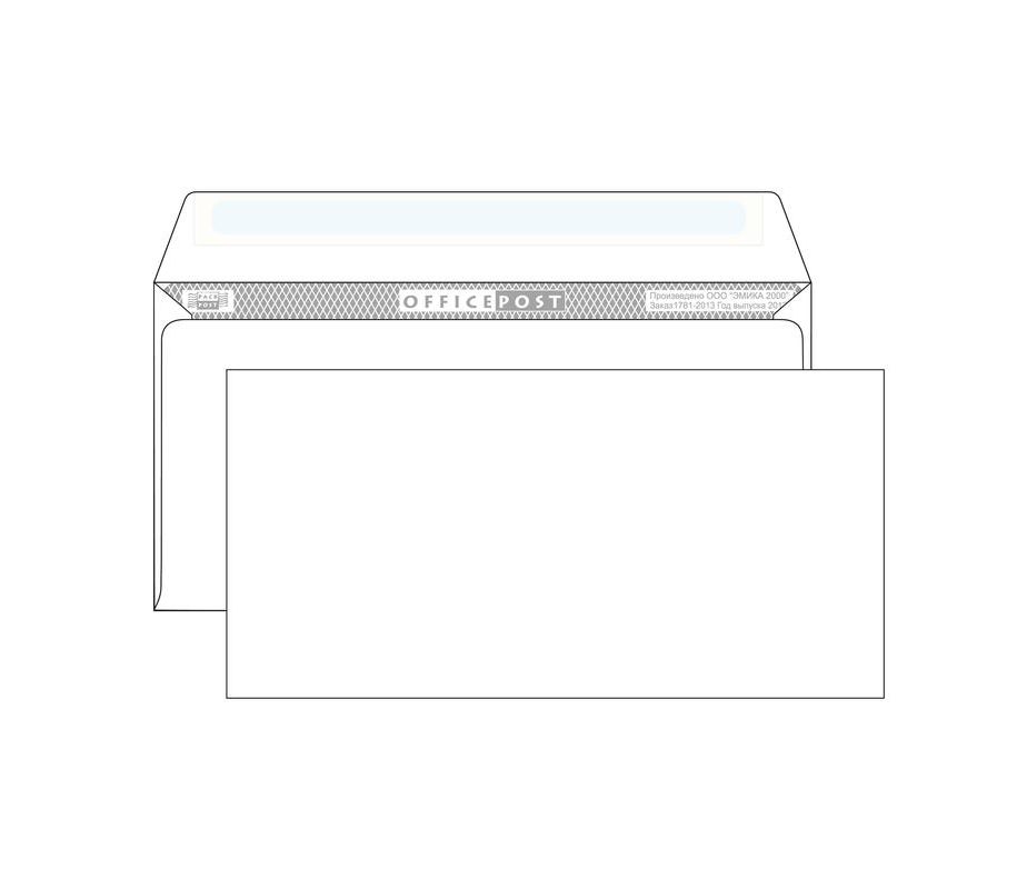 Конверт почтовый OfficePost E65 (110x220 мм) белый удаляемая лента (100 штук в упаковке)