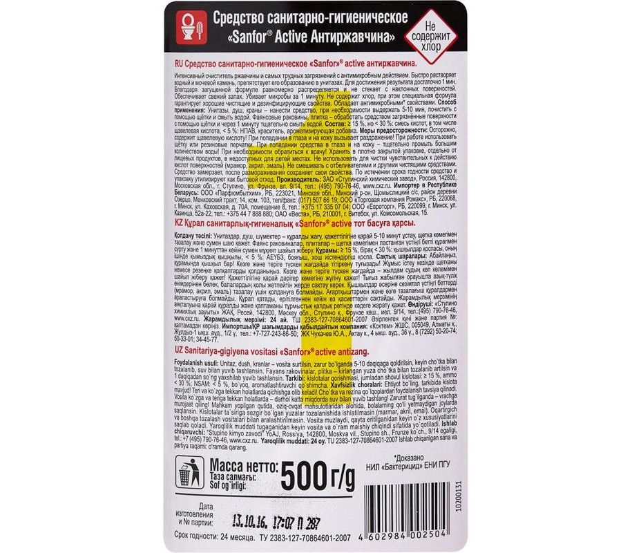 Средство санитарно-гигиеническое Sanfor Active Антиржавчина