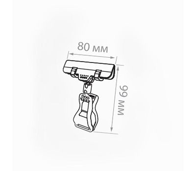 Крепится на торец полки, корзину толщиной до 25 мм. При креплении на трубу — максимальный O трубы — 32 мм. Толщина ценника или таблички — до 6 мм. Ширина держателя ценника — 80 мм.