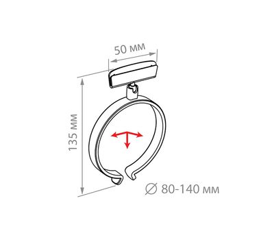 Держатель ценника на продукты цилиндрической формы диаметром от 80 до 140 мм. Ценникодержатель шириной 50 мм, есть возможность регулировки угла наклона.