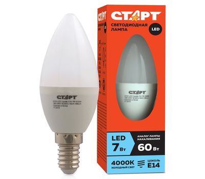 Лампа светодиодная Старт LED, серия "ЭКО" 7W40, тип С "свеча", E14, 4000К, холодный свет, 15000ч