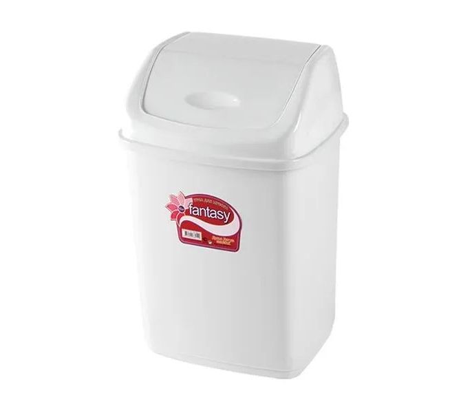 Ведро для мусора выполнена из пластика цвета белого. Вместимость — 10 литров. Подходит для бытовых и офисных помещений. Крышка-вертушка