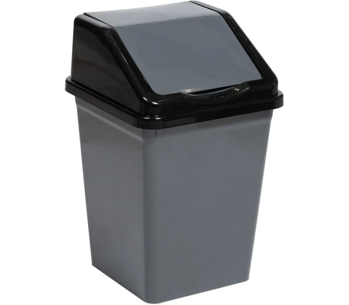 Ведро мусорное 5 л, пластиковое, с крышкой-вертушкой серо-черное