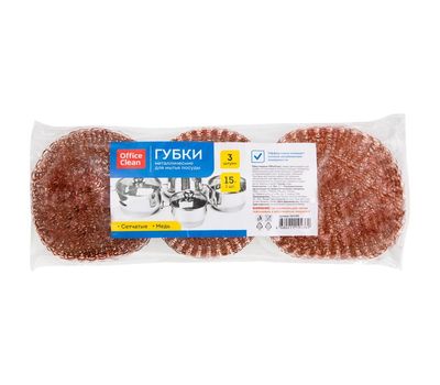 Губки медные OfficeClean эффективно очищают сильно загрязненные поверхности. Имеют увеличенный срок службы, не окисляются, не боятся больших температур. Предназначены для мытья кухонных предметов из нержавеющей стали, чугуна, меди, алюминия. Пригодна для очистки кафеля.