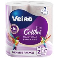 Полотенца бумажные 3-слойные белые Veiro Colibri (2 рулона по 15 метров) с цветным тиснением