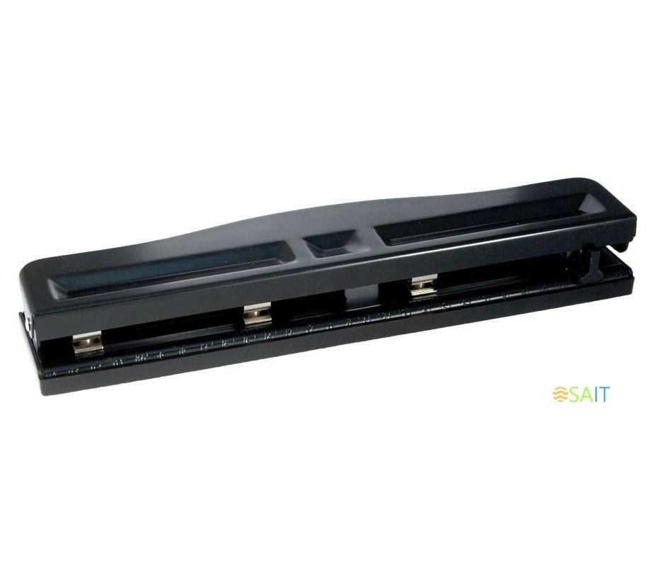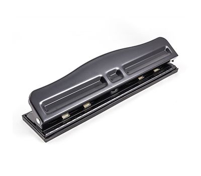 Дырокол до 10 листов, на 4 отверстия, металлический корпус, черный