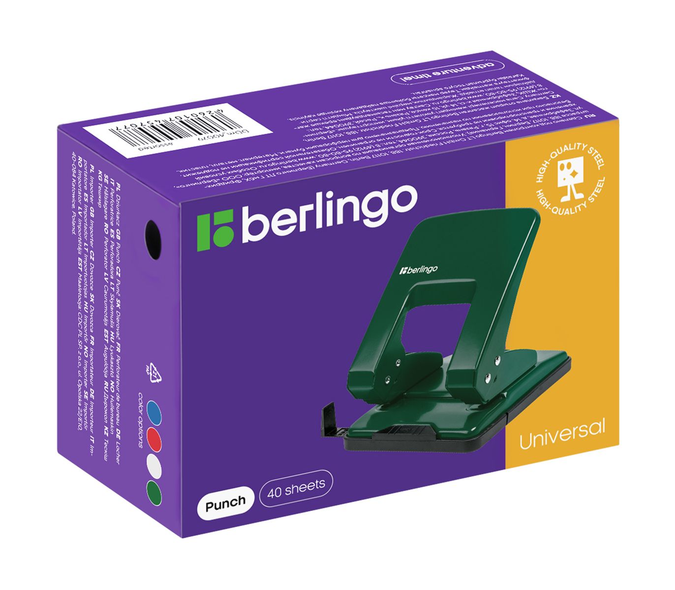 Дырокол Berlingo "Universal" до 40 листов, металлический, цвет ассорти, с линейкой