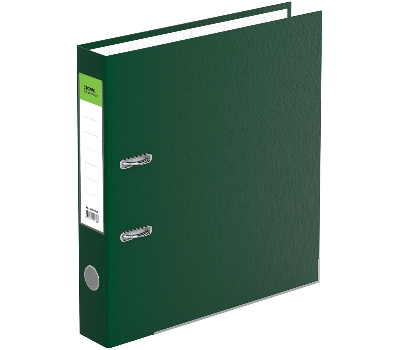 Папка с арочным механизмом 50 мм СТАММ "Бизнес", бумвинил, с карм. на корешке, нижний метал. кант, зеленая