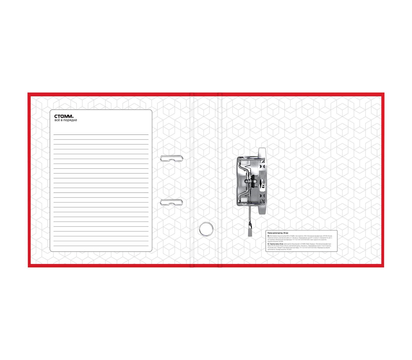 Папка-регистратор «СТАММ» серии «Стандарт» формата А4 с арочным механизмом идеальна для создания архива и экономии офисного пространства. Папка вмещает до 450 листов. Размер папки – 320*290*50 мм. Ориентация папки – вертикальная. Ширина корешка составляет 50 мм. Минималистичный классический дизайн: папка выполнена в глубоком красном цвете. Изготовлена из жесткого износостойкого картона с односторонним покрытием из бумвинила. Папка имеет арочный механизм из качественного металла. Конструкция разработана с учетом всех особенностей эксплуатации. Эргономичное отверстие в корешке помогает быстро снять папку с полки. На корешке папки есть карман со сменным информационным ярлыком для маркировки. На внутренней стороне обложки папка-регистратор имеет поле для записи.
