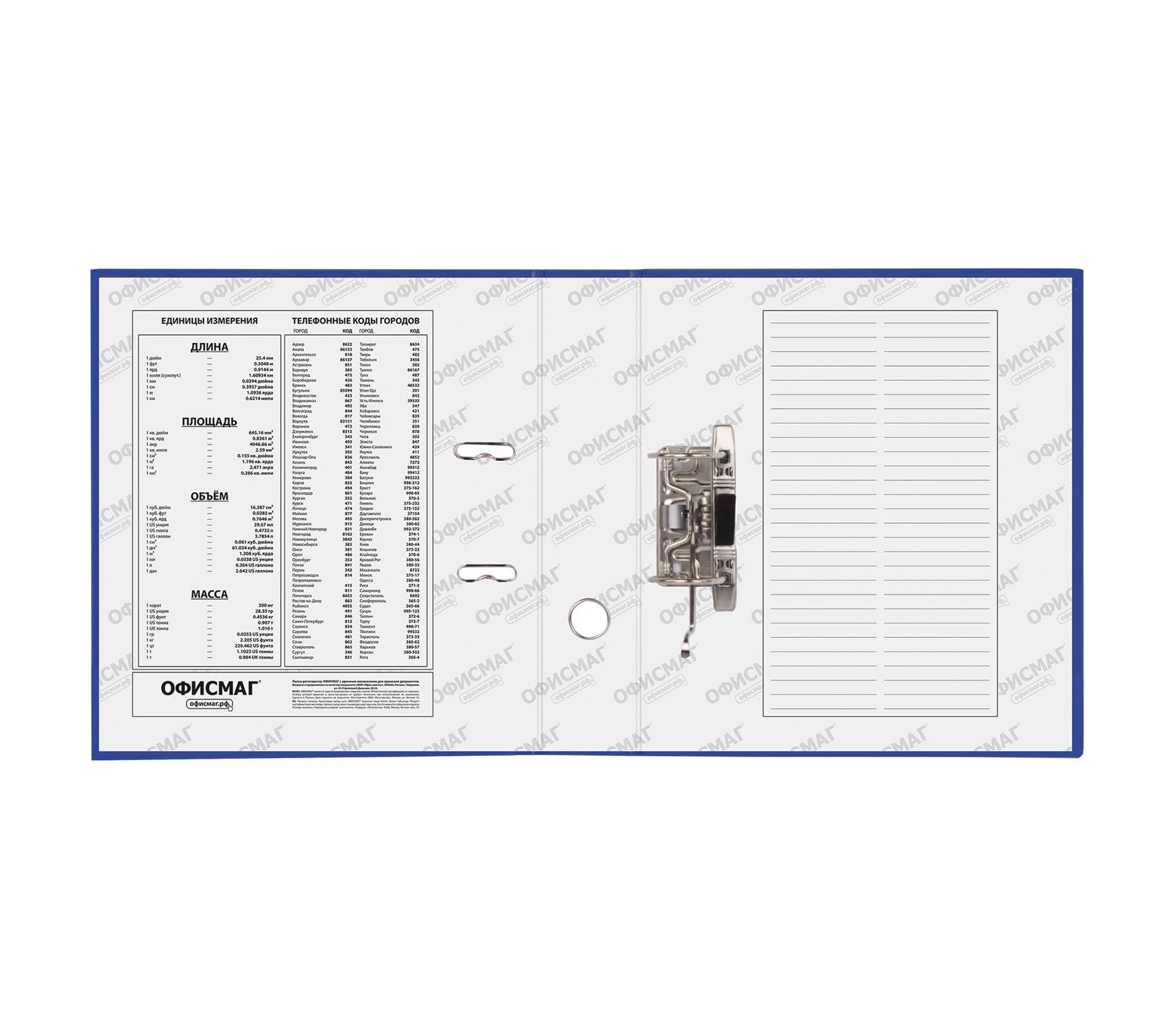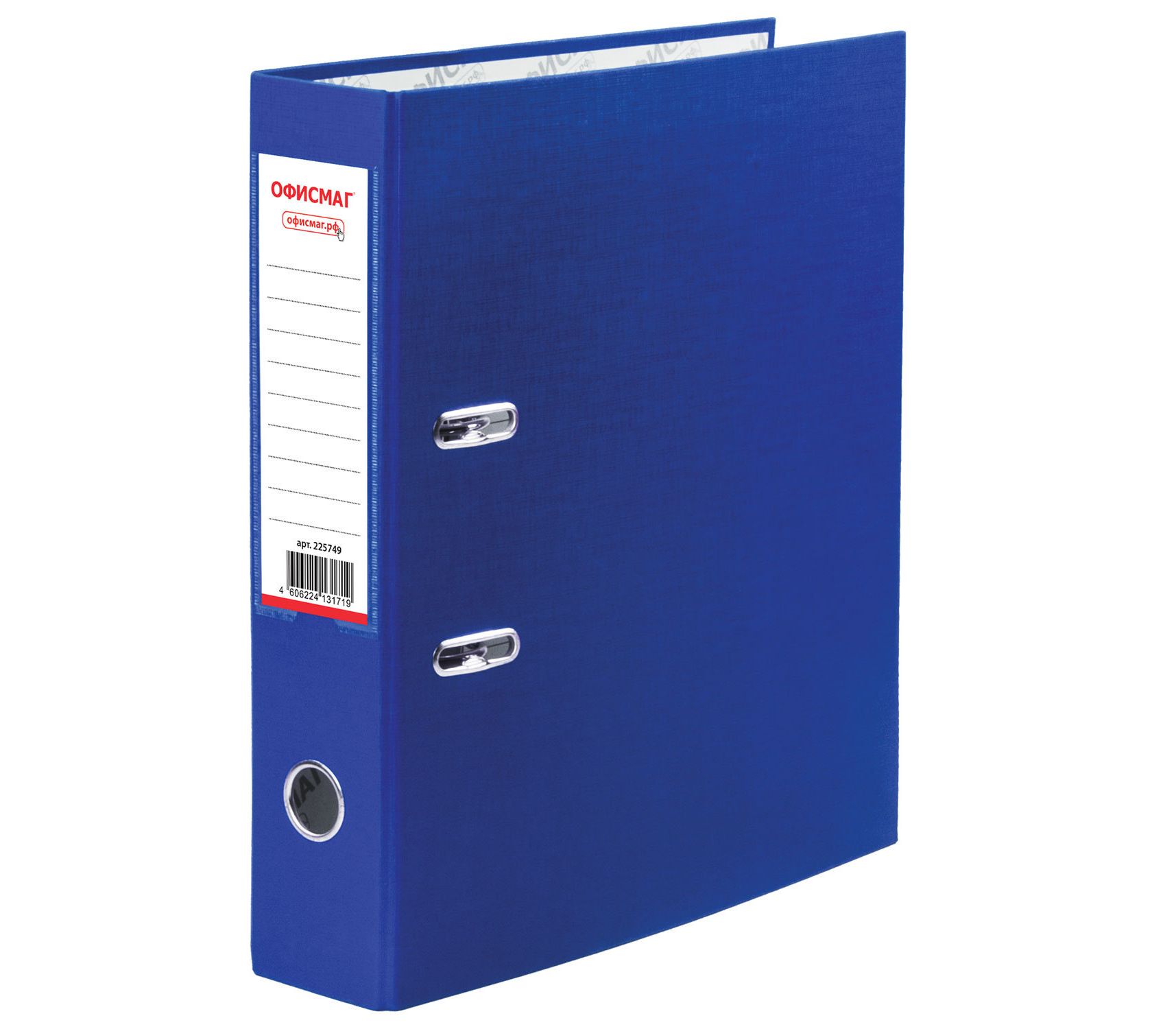 Папка с арочным механизмом 75 мм ОФИСМАГ, ПВХ, с карм. на корешке, синяя