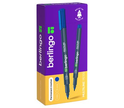 Маркер перманентный Berlingo синий, пулевидный, 1 мм