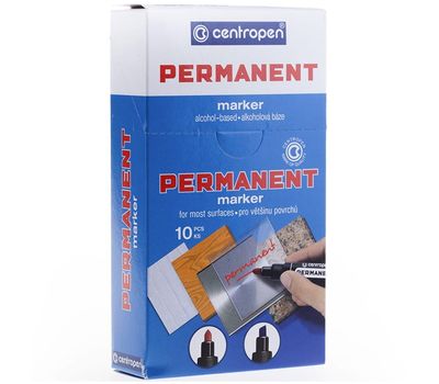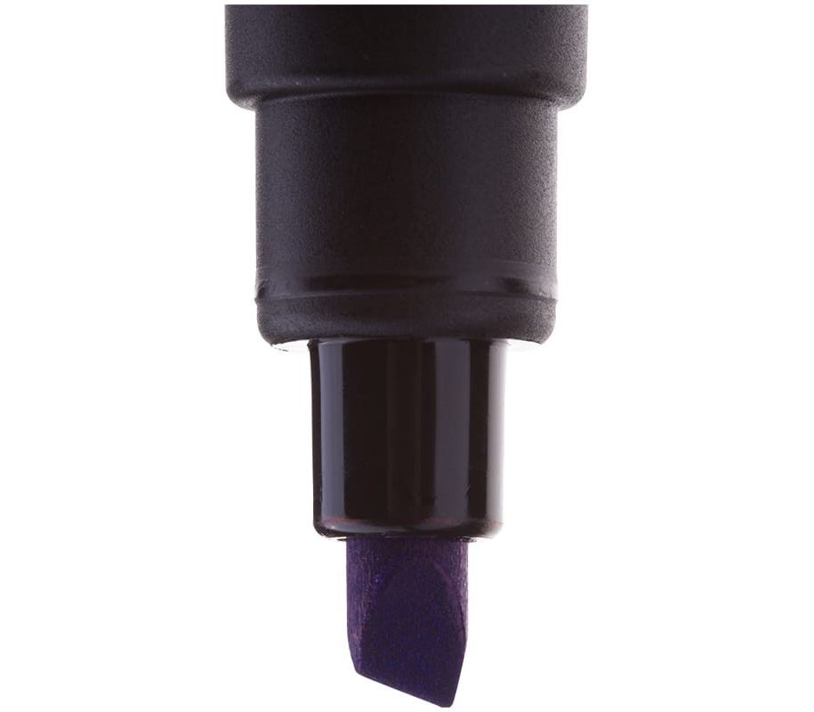 Пишет на бумаге, резине, коже, пластмассе, металле. Перманентные чернила на спиртовой основе, водостойкие, термостойкие (до 100°C). Клиновидный пишущий наконечник, ширина линии 1 – 4,6 мм.