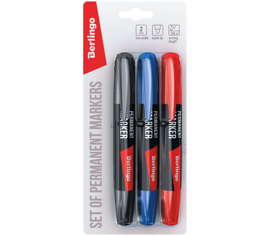 Набор перманентных маркеров Berlingo 3 цвета, пулевидный, 2 мм, блистер