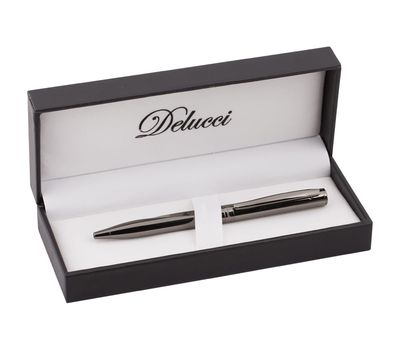 Ручка шариковая Delucci "Arte", синяя, 0,7 мм, корпус оружейный металл, с кристаллом, подарочная упаковка
