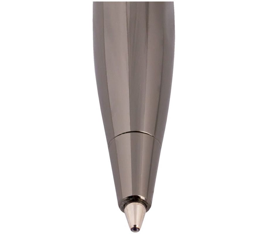 Ручка шариковая Delucci "Arte". Цвет корпуса - оружейный металл. Элегантный корпус с двумя играющими вогнутыми гранями, образующими плавную спираль. Роскошную форму довершает переливающийся крупный кристалл, встроенный в торцевой элемент корпуса. Изящная гравировка логотипа на кольце. Утонченный изогнутый клип. Изготовлена из меди, которая обеспечивает прочность и оптимальный вес для комфортного письма. Диаметр корпуса - 8,5 мм. Презентабельность и изысканность дизайна великолепно сочетаются с изумительным качеством письма. Ручка оснащена поворотным механизмом подачи стержня. Цвет чернил - синий. Диаметр пишущего узла - 1,0 мм. Упакована в кожаный подарочный футляр с тиснением логотипа, затем в бумажный рукав из тонированной бумаги с тиснением логотипа.