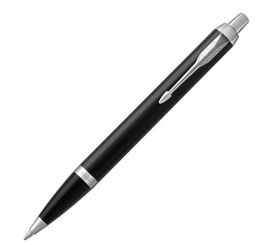 Шариковая ручка Parker IM из обновленной коллекции IM. Основные особенности нового дизайна: новыйзажим-стрела с тремя широкими перьями, укороченная форма торца на колпачке, широкое кольцо на корпусе теперь состоит из 3 соединенных вместе колец, на среднем выполнена гравировка логотипа Parker. Ручка оснащается кнопочным механизмом нажимного действия. Корпус шариковой ручки выполнен из латуни и покрыт глянцевым лаком черного цвета, детали дизайна покрыты хромом. Ручка поставляется в престижной подарочной коробке с обновленным дизайном. В комплекте также присутствует один стержень синего цвета.