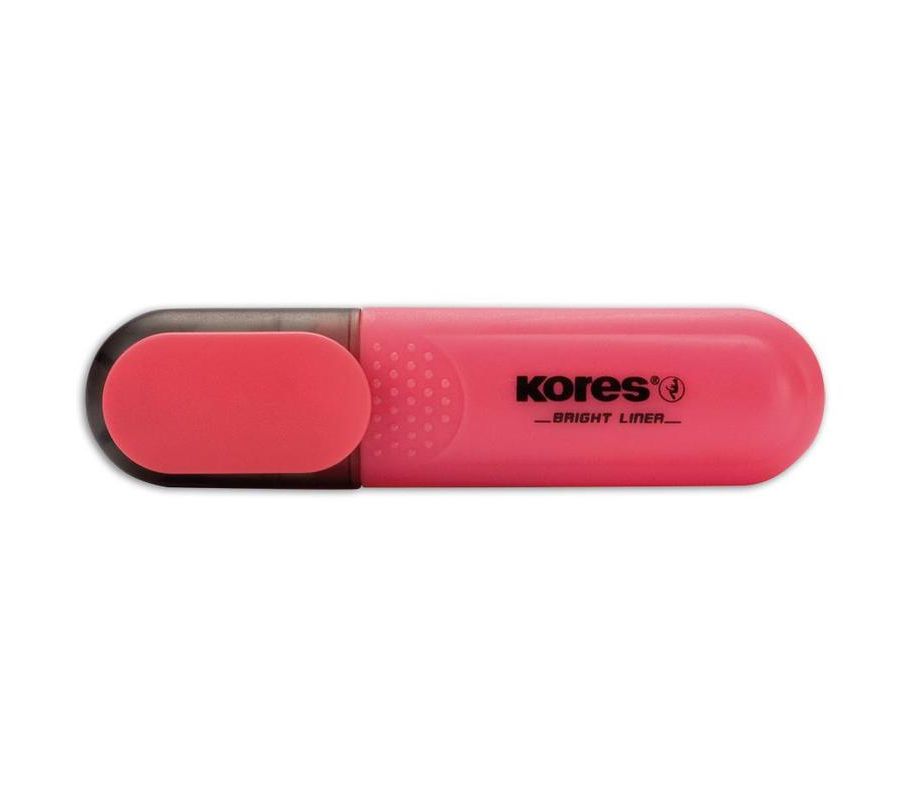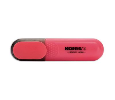 Текстовыделитель Kores в пластиковом корпусе с колпачком, исключающим испарение. Скошенный наконечник, устойчивый к высыханию, обеспечивает толщину линии письма от 0,5 до 5 мм. Светостойкие чернила красного цвета на водной основе позволяют использовать текстовыделитель на различных типах бумаги.