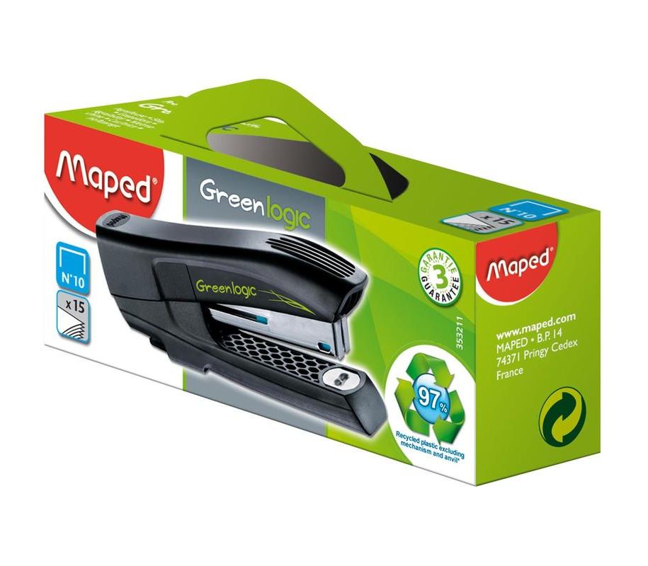 Степлер Maped Greenlogic до 15 листов черный (скобы № 10, с антистеплером)