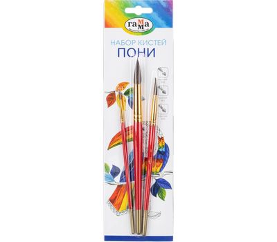 Набор кистей пони круглые 3 штуки (№2, №5, №8) лакированная ручка