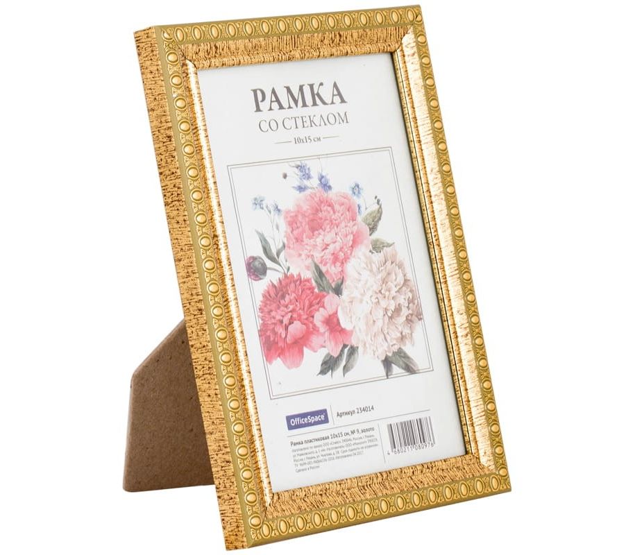 Рамка пластиковая 10х15 см, OfficeSpace, № 9, золото