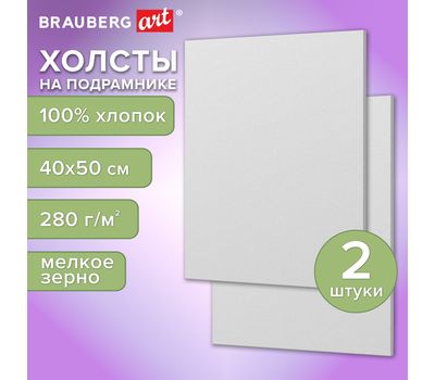 Холсты на подрамнике, набор 2 штуки, BRAUBERG ART BASIC, 40х50 см, 280 г/м2, хлопок, грунт