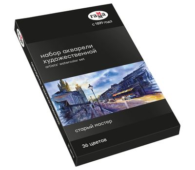 Профессиональная художественная акварель «ГАММА» серии «Старый мастер» разработана в собственной исследовательской лаборатории завода. Профессиональные краски состоят из тонкодисперсных пигментов, связующего, в состав которого входит раствор растительного клея - гуммиарабика высшей степени очистки, что обеспечивает насыщенность цветов, чистоту и прозрачность красочного слоя. Акварель «Старый мастер» изготавливается без использования дополнительных наполнителей, а многослойная заливка увеличивает долю пигмента. Краски обладают высоким уровнем светостойкости. С помощью акварельных красок «ГАММА» серии «Старый мастер» можно писать в различных техниках, например, - лессировка, по - мокрому, заливка, сухая кисть.