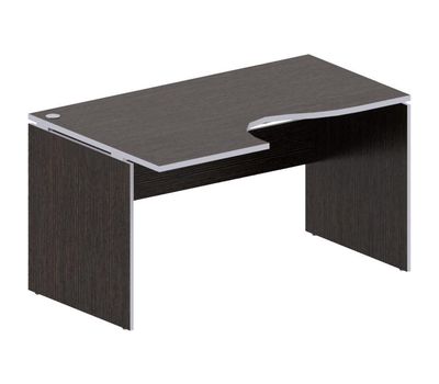 Стол эргономичный изготовлен из высокопрочного, термовлагостойкого ЛДСП, класс эмиссии Е-1. Столешница сделана изготовлена из ЛДСП толщиной 25 мм, торцевые поверхности которой защищены кромкой ПВХ толщиной 2 мм. Подстолье стола состоит из двух стенок боковых и царги, состоящей из двух частей одинакового размера (1164×192 мм), изготовленных из ЛДСП толщиной 18 мм. Видимые торцевые поверхности боковых стенок защищены кромкой ПВХ толщиной 1 мм. Невидимая торцевая поверхность и торцевые поверхности царг защищены кромкой из меламина. Столешница и опоры соединены декоративной проставкой размером 80×26×16 мм. Проставки изготовлены из МДФ, окрашены в цвет алюминий. В столешницах предусмотрено отверстие для проводов с декоративной пластиковой заглушкой, что обеспечивает удобство прокладки коммуникаций. Изделие собирается на двухкомпонентных эксцентриковых стяжках и деревянных шкантах. Стол регулируется по высоте при помощи опоры регулируемой (диапазон регулировки: 12 мм). Материал и толщина столешницы, кромки — ЛДСП толщиной 25 мм, кромка ПВХ толщиной 2 мм. Материал и толщина каркаса, кромки — ЛДСП толщиной 18 мм, кромка ПВХ толщиной 1 мм.