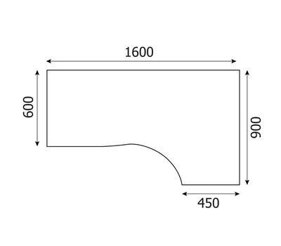 Стол письменный правый Simple (1600x900x760 мм, легно светлый)