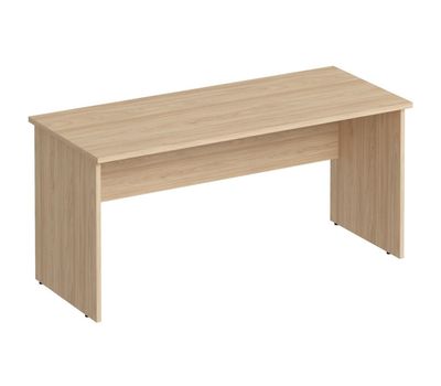 Стол прямой состоит из столешницы и каркаса. Каркас состоит из двух боковин, соединенных лицевой панелью (экраном) высотой 430 мм при помощи эксцентриковых стяжек. Боковины выполнены из ЛДСП толщиной 22 мм. Экран выполнен из ЛДСП толщиной 16 мм, допускается использовать ЛДСП толщиной 22 мм. Торцевые кромки боковин и экрана облицованы кромочным материалом из ПВХ толщиной 0,4 мм. Опоры регулируемые. Диапазон регулирования — 10 мм, что компенсирует неровности пола. Столешница прямоугольной формы выполнена из ЛДСП толщиной 22 мм. Торцевые кромки столешницы облицованы кромочным материалом из ПВХ толщиной 2 мм. Столешница с боковинами соединяется при помощи эксцентриковых стяжек. Конструкция стола позволяет установить экран в двух положениях: стола рабочего и стола для совещаний. Свесы столешницы: с боковых сторон — 6 мм, с фронтальной стороны — 62 мм. Мебель поставляется в разобранном виде. Подробная инструкция по сборке вложена в упаковку. Материал и толщина столешницы, кромки — ЛДСП толщиной 22 мм, кромка ПВХ толщиной 2 мм. Материал и толщина каркаса, кромки — ЛДСП толщиной 22 мм, кромка ПВХ толщиной 0,4 мм.