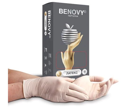 ПЛатексные смотровые перчатки BENOVY предназначены для одноразового использования в качестве защитного барьера при ношении на руках медицинского работника во время осмотра/лечения пациента или для других санитарных целей.