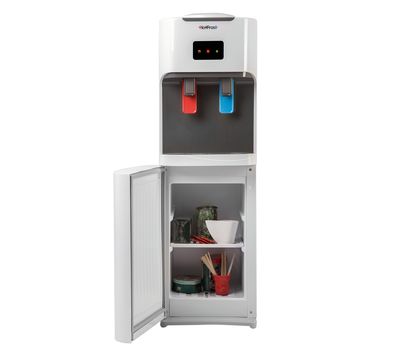 В кулере используется электронный тип охлаждения, поэтому Вы всегда сможете утолить жажду стаканом прохладной воды. Увеличенная мощность нагрева делает этот аппарат гораздо производительнее: он способен нагревать до 6 литров воды в час. Это прекрасный выбор для тех, кто любит побаловать себя горячим чаем и кофе. Приятным бонусом станет размещенный в нижней части шкафчик, в котором можно хранить чай, кофе, сахар или одноразовые стаканчики.