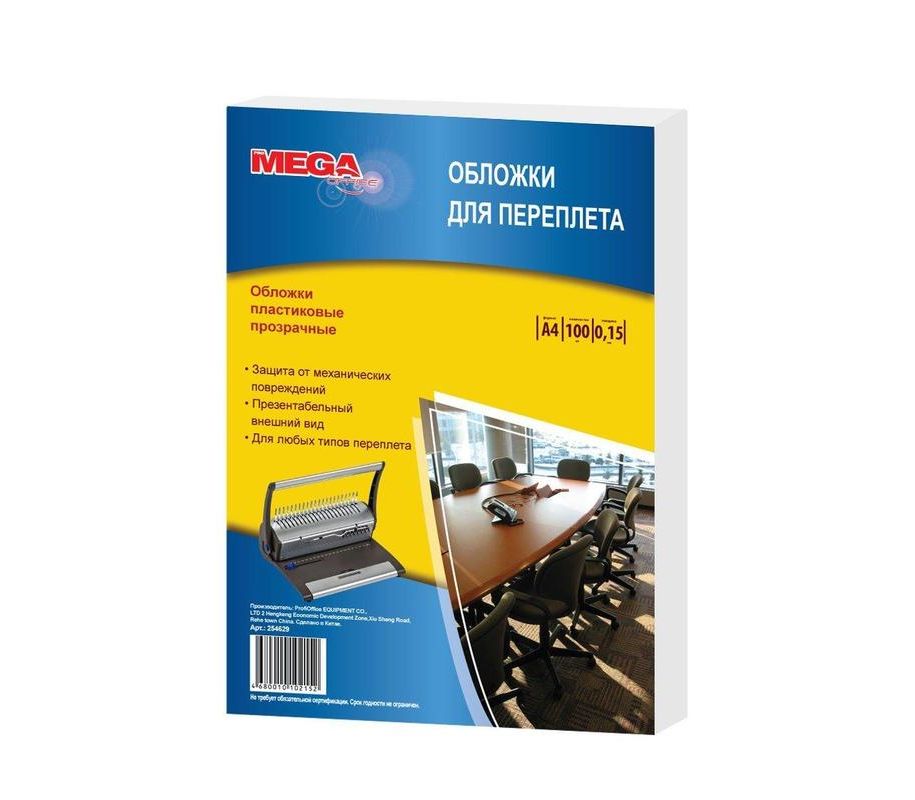 Обложки для переплета пластиковые ProMEGA Office А4 150 мкм прозрачные глянцевые (100 штук в упаковке)